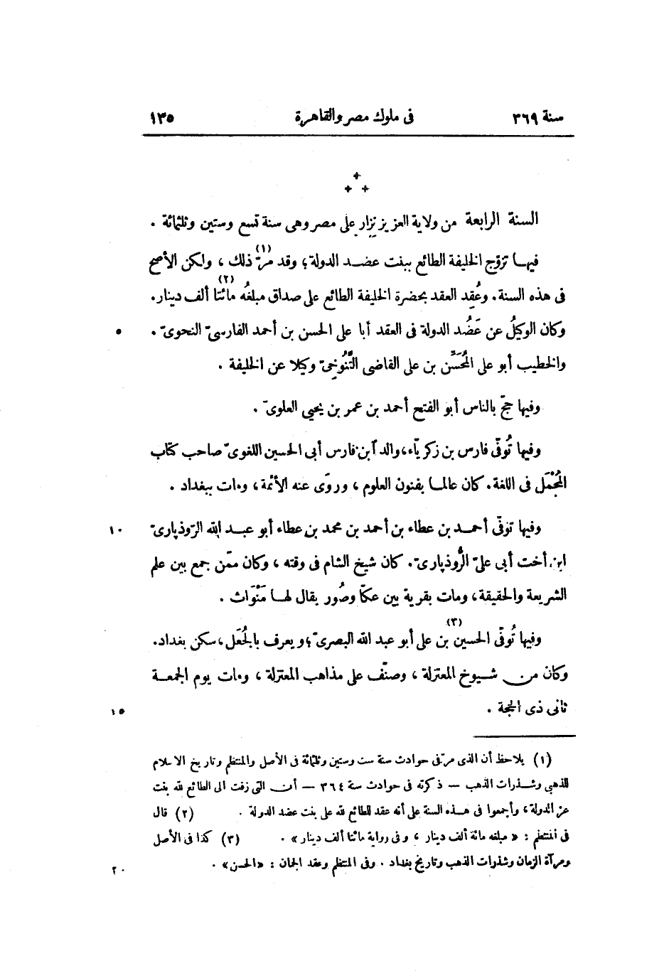السنة الرابعة من ولاية العزيز نزار على مصر وهى سنة تسع وستين وثلثمائة.