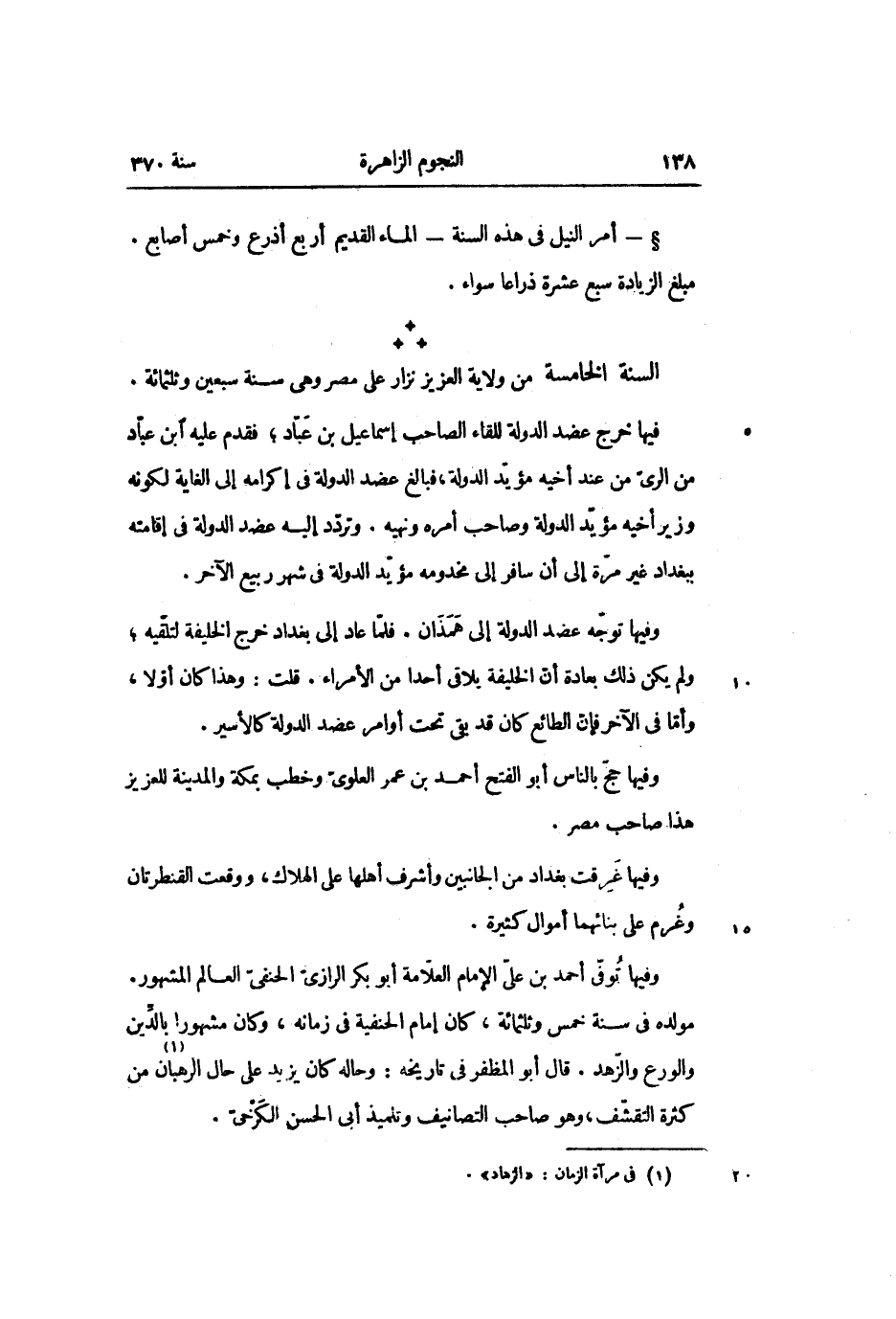 السنة الخامسة من ولاية العزيز نزار على مصر وهى سنة سبعين وثلثمائة.