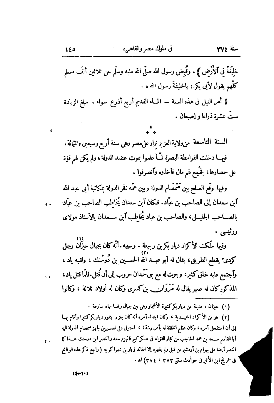 السنة التاسعة من ولاية العزيز نزار على مصر وهى سنة أربع وسبعين وثلثمائة.