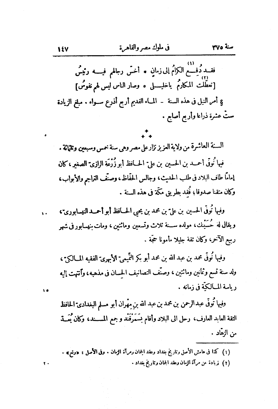 السنة العاشرة من ولاية العزيز نزار على مصر وهى سنة خمس وسبعين وثلثمائة.