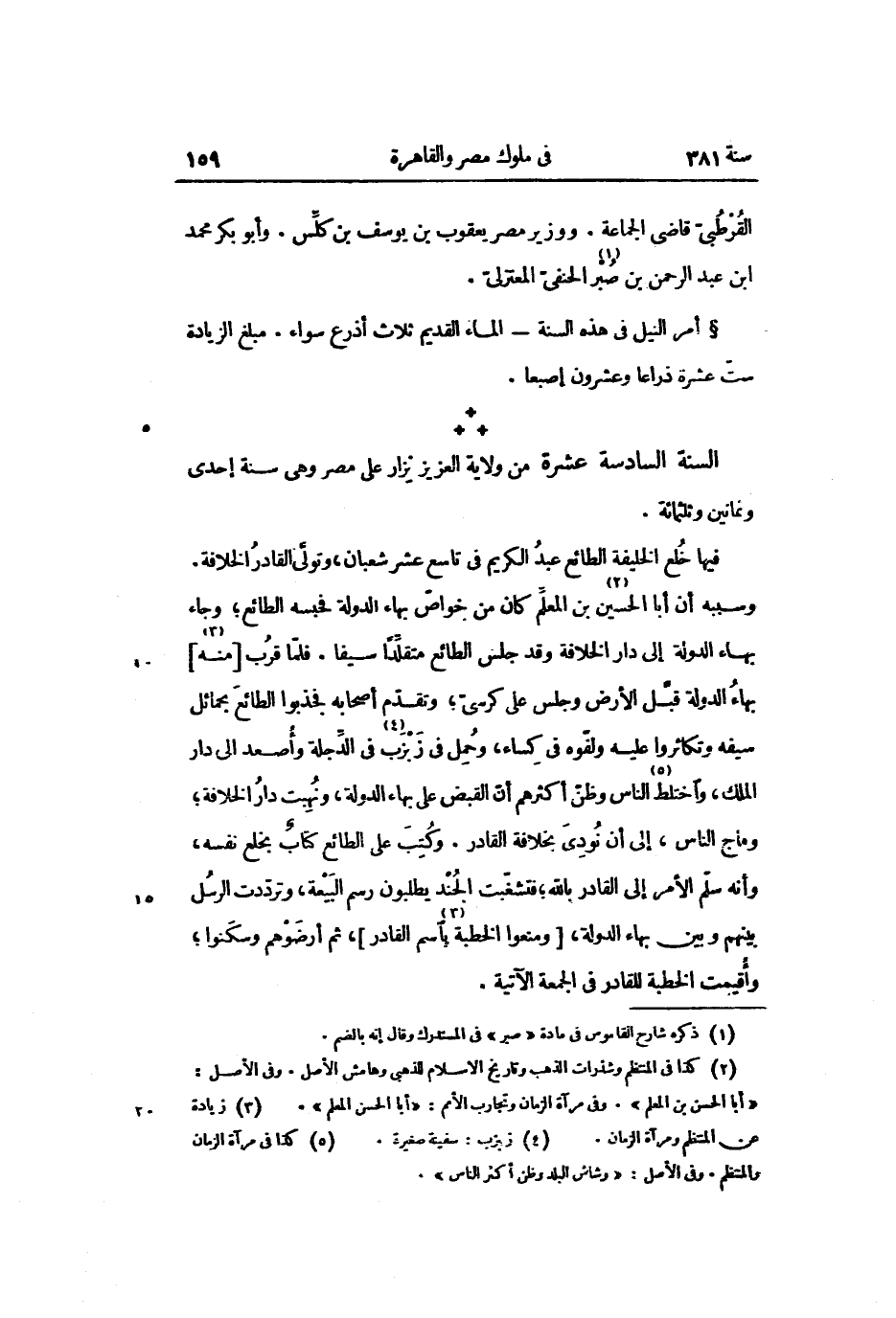 القرطبىّ قاضى الجماعة. ووزير مصر يعقوب بن يوسف بن كلّس. وأبو بكر محمد ابن عبد الرّحمن بن صبر «1» الحنفىّ المعتزلىّ.