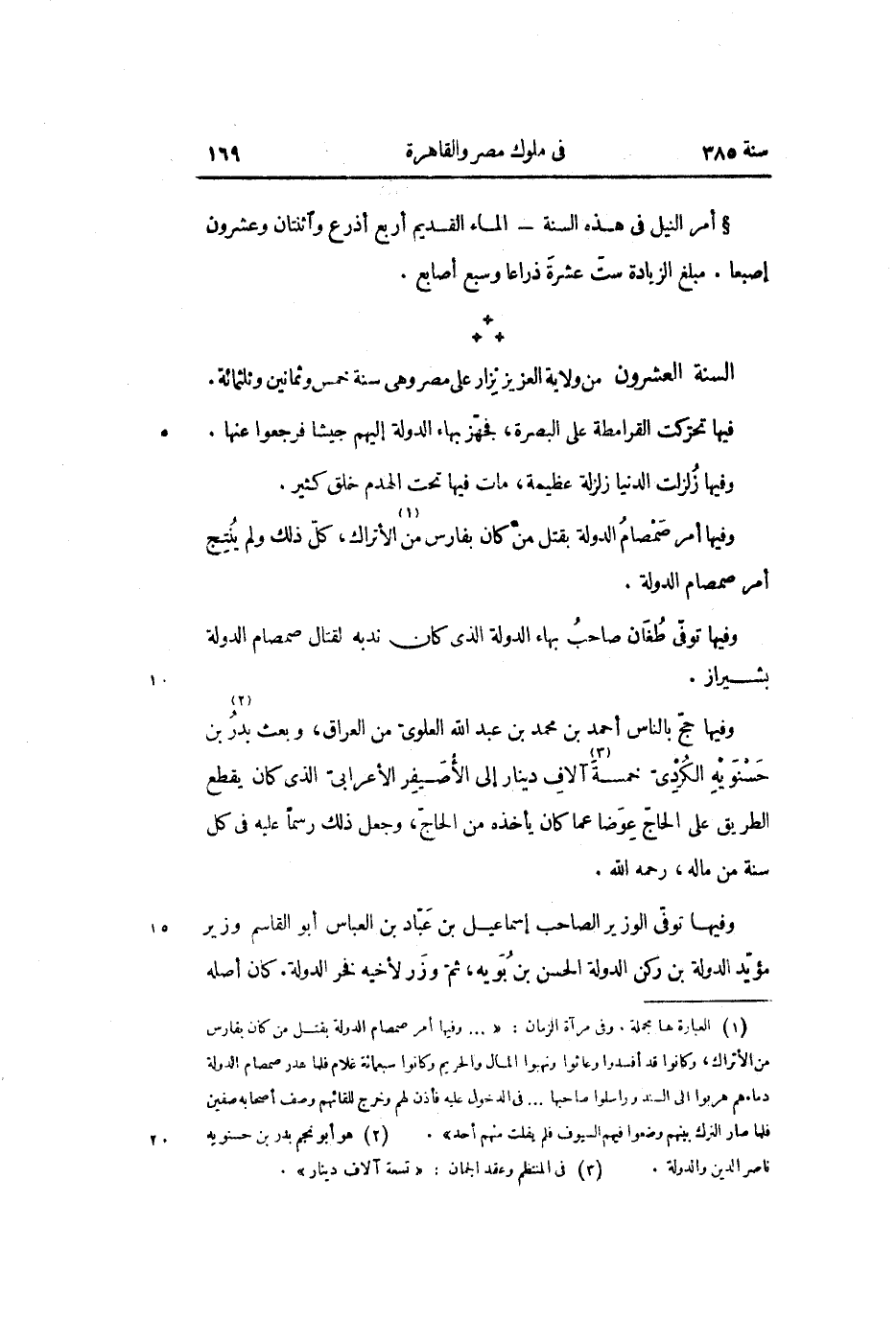 السنة العشرون من ولاية العزيز نزار على مصر وهى سنة خمس وثمانين وثلثمائة.