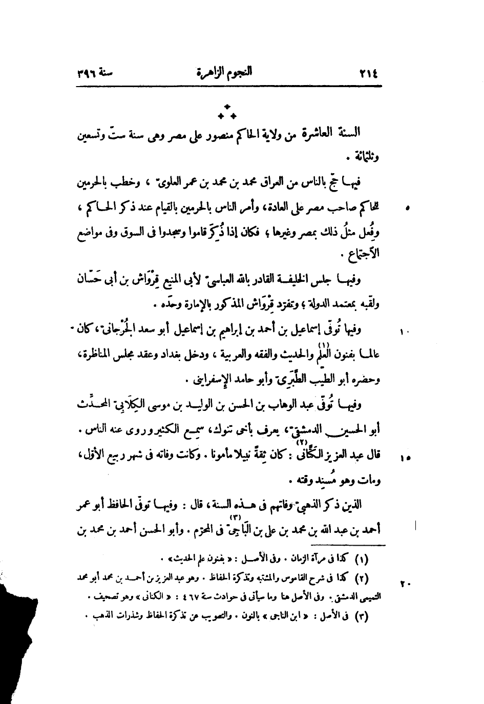 السنة العاشرة من ولاية الحاكم منصور على مصر وهى سنة ستّ وتسعين وثلثمائة.