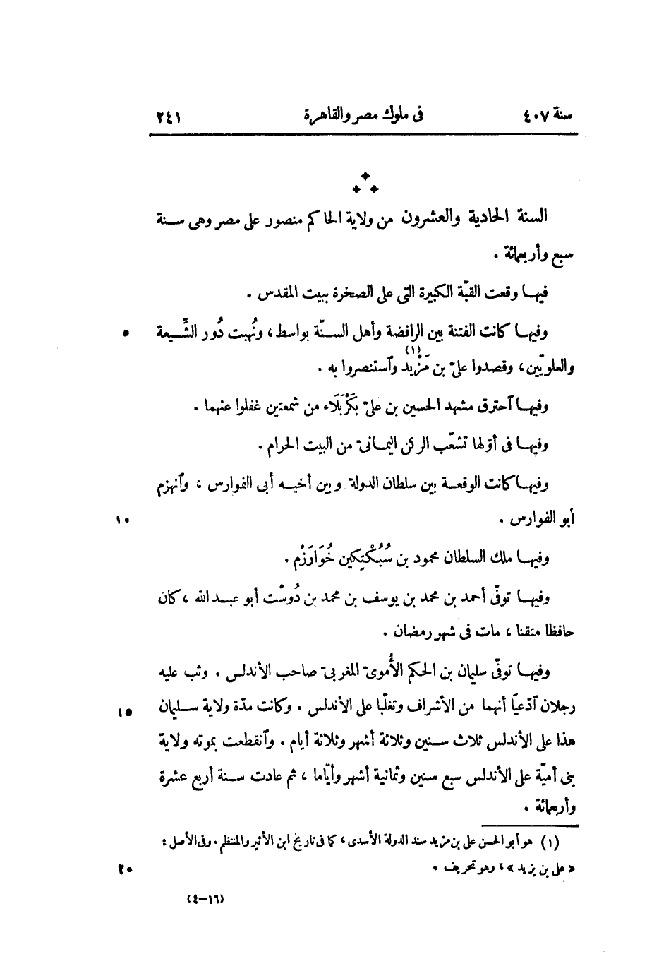 السنة الحادية والعشرون من ولاية الحاكم منصور على مصر وهى سنة سبع وأربعمائة.