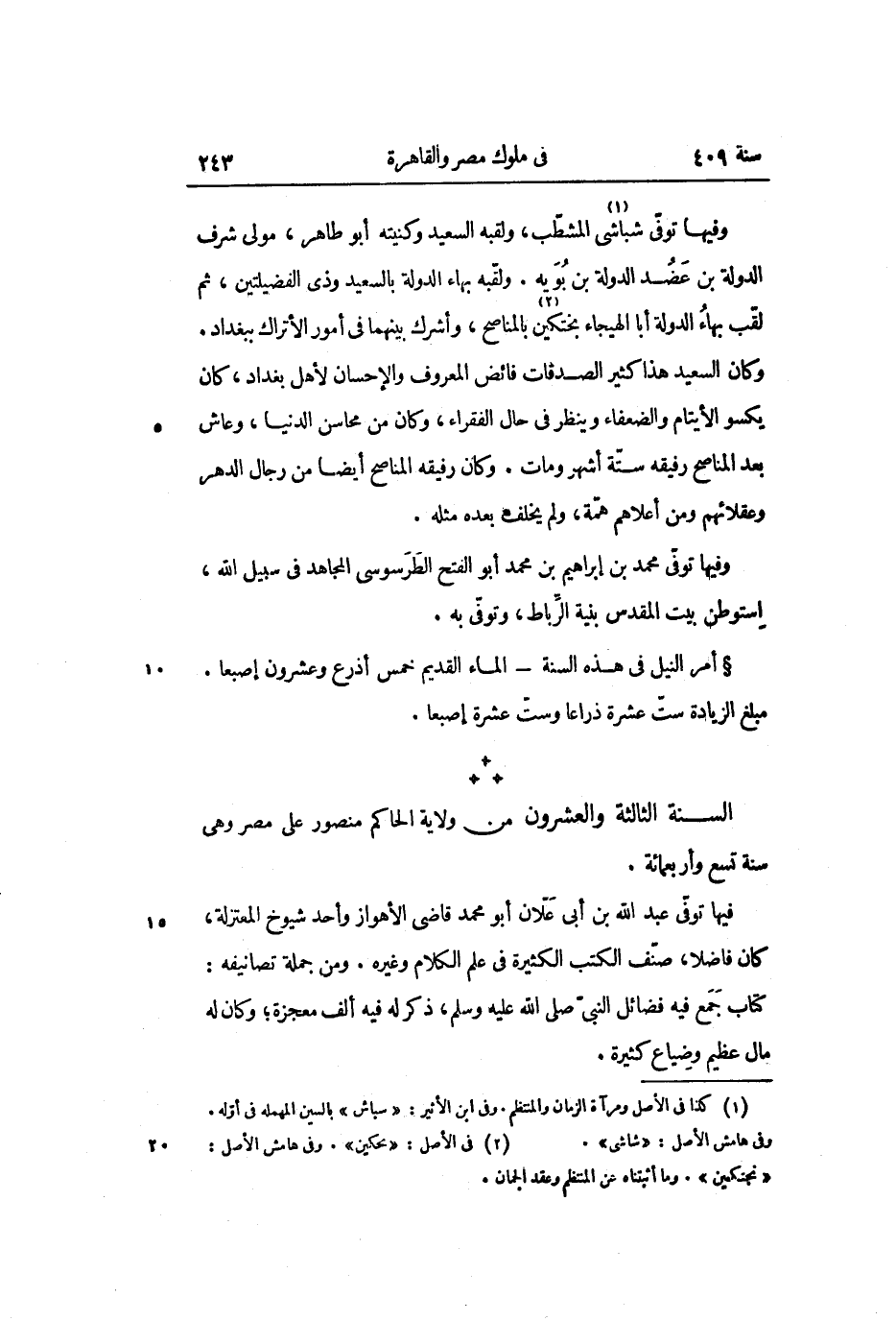 السنة الثالثة والعشرون من ولاية الحاكم منصور على مصر وهى سنة تسع وأربعمائة.