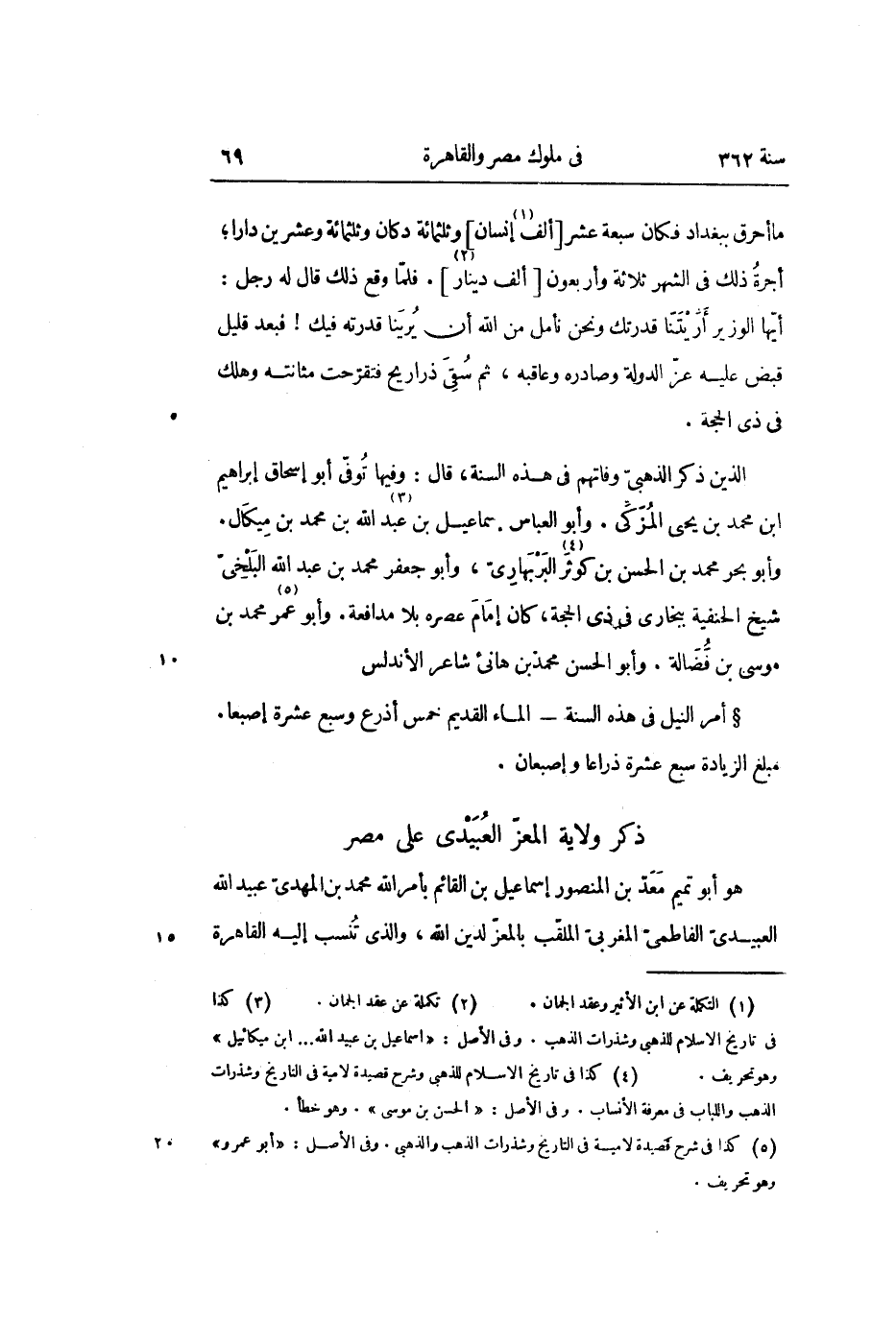 أيّها الوزير أريتنا قدرتك ونحن نأمل من الله أن يرينا قدرته فيك! فبعد قليل قبض عليه عزّ الدولة وصادره وعاقبه، ثم سقى ذراريح فتقرّحت مثانته وهلك فى ذى الحجة.