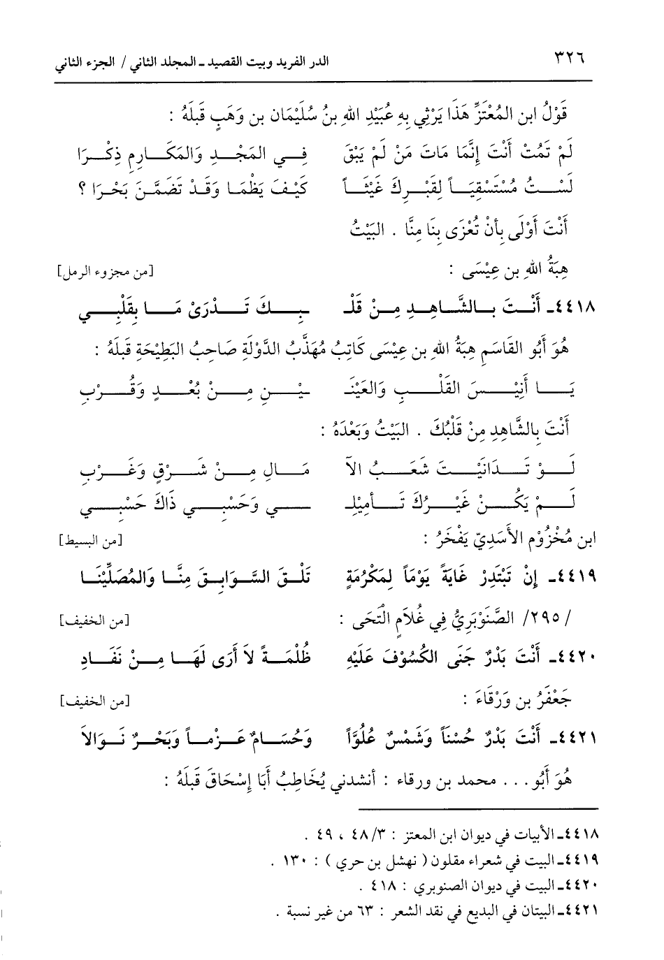4418 - الأبيات في ديوان ابن المعتز: 3/ 48، 49.