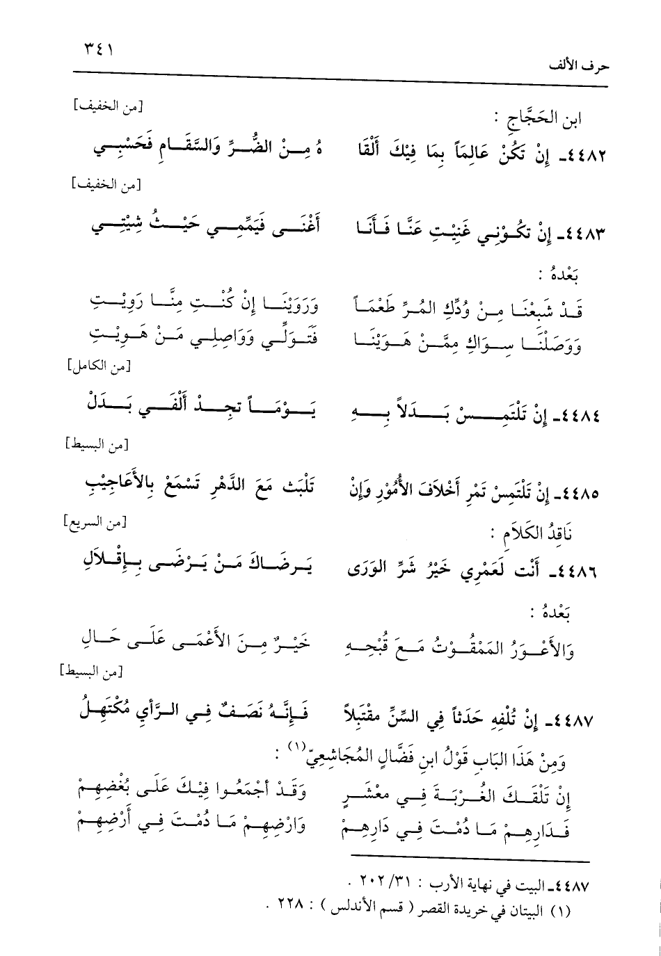 4482 - إِنْ تَكُنْ عَالِمًا بِمَا فِيْكَ أَلْقَا ... هُ مِنْ الضُّرِّ وَالسَّقَامِ فَحَسْبِي