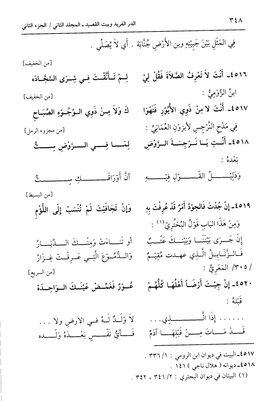 4516 - أَنْتَ لَا تَعْرِفُ الصَّلَاةَ فَقُلْ لِيْ ... لِمْ تَأَنَّقْتَ فِي شِرَى السَّجَّادَه