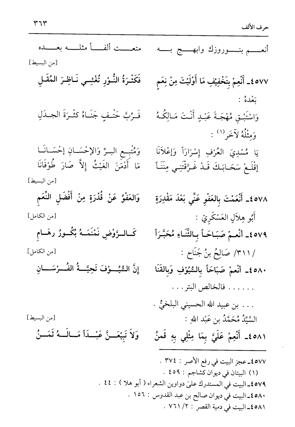 4581 - أَنْعِمْ عَلَيَّ بِمَا مِثْلِي بِهِ قَمنُ ... وَلَا تَبِيْعَنَّ عَبْدًا مَالَهُ ثَمَنُ