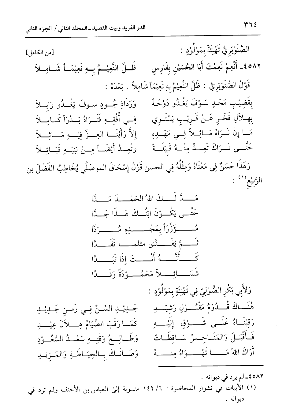 الصَّنَوْبَرِيُّ تَهْنِئَةً بِمَوْلُوْدٍ: [من الكامل]