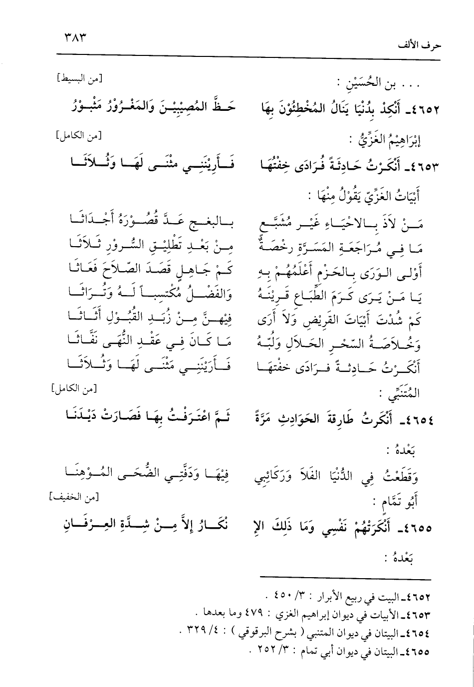 4655 - أَنْكَرَتْهُمْ نَفْسِي وَمَا ذَلِكَ الإِ ... نْكَارُ إِلَّا مِنْ شِدَّةِ العِرْفَانِ