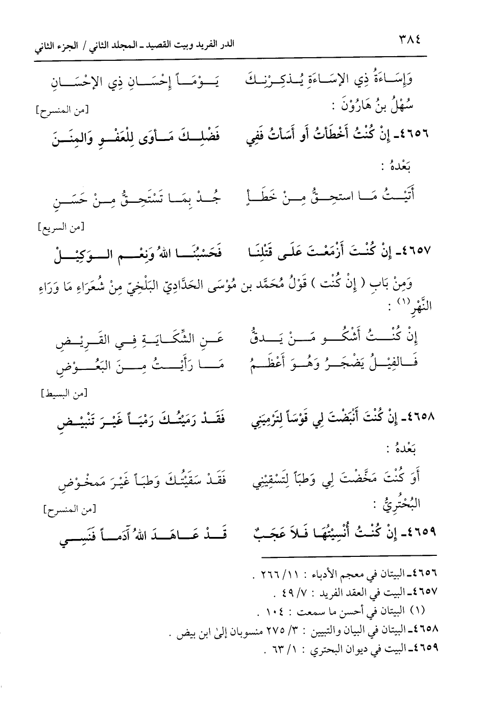 4657 - البيت في العقد الفريد: 7/ 49.