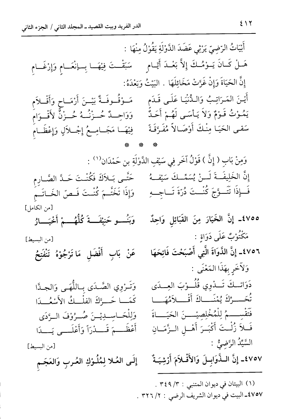 4757 - البيت في ديوان الشريف الرضي: 2/ 326.