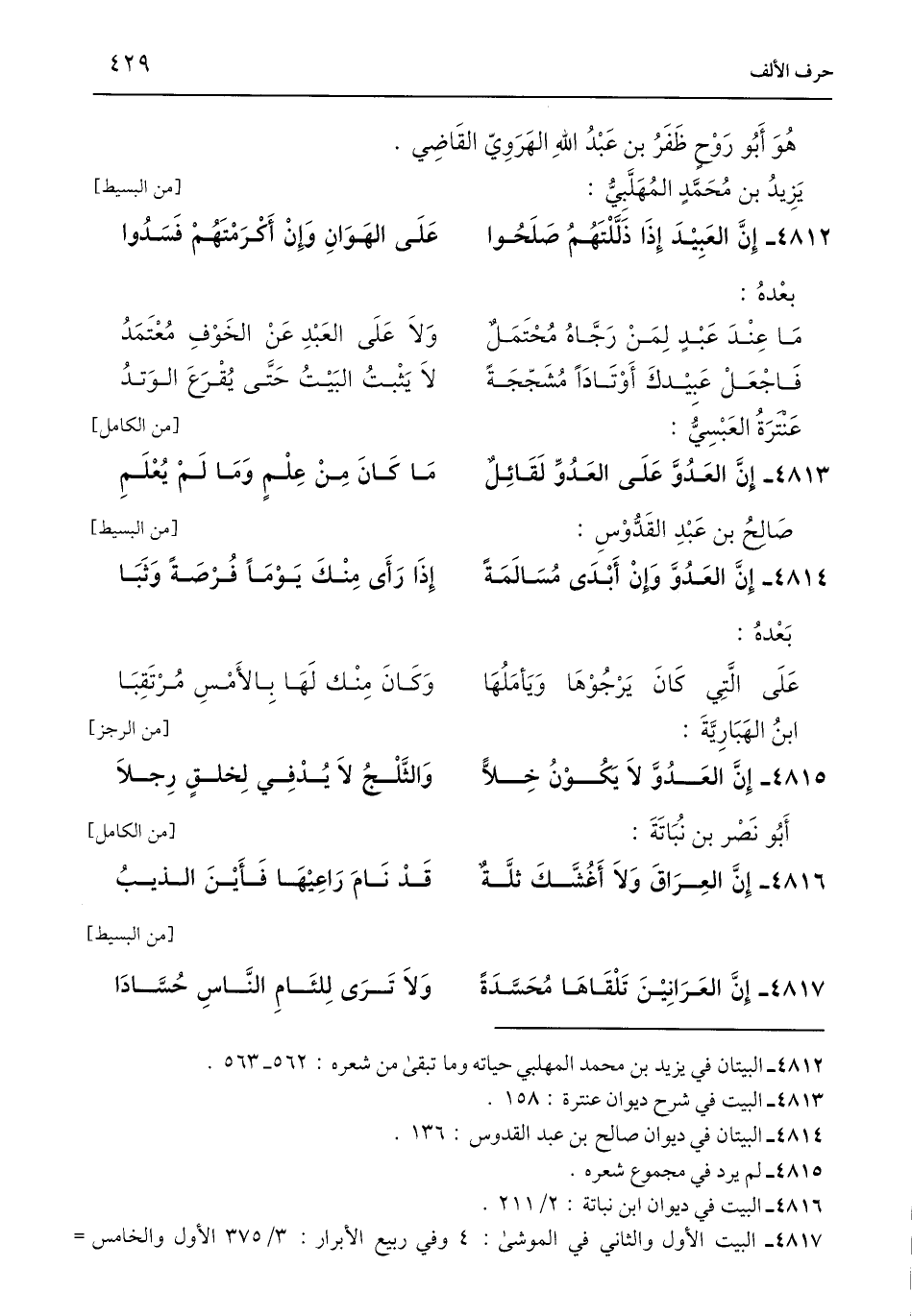 4813 - البيت في شرح ديوان عنترة: 158.