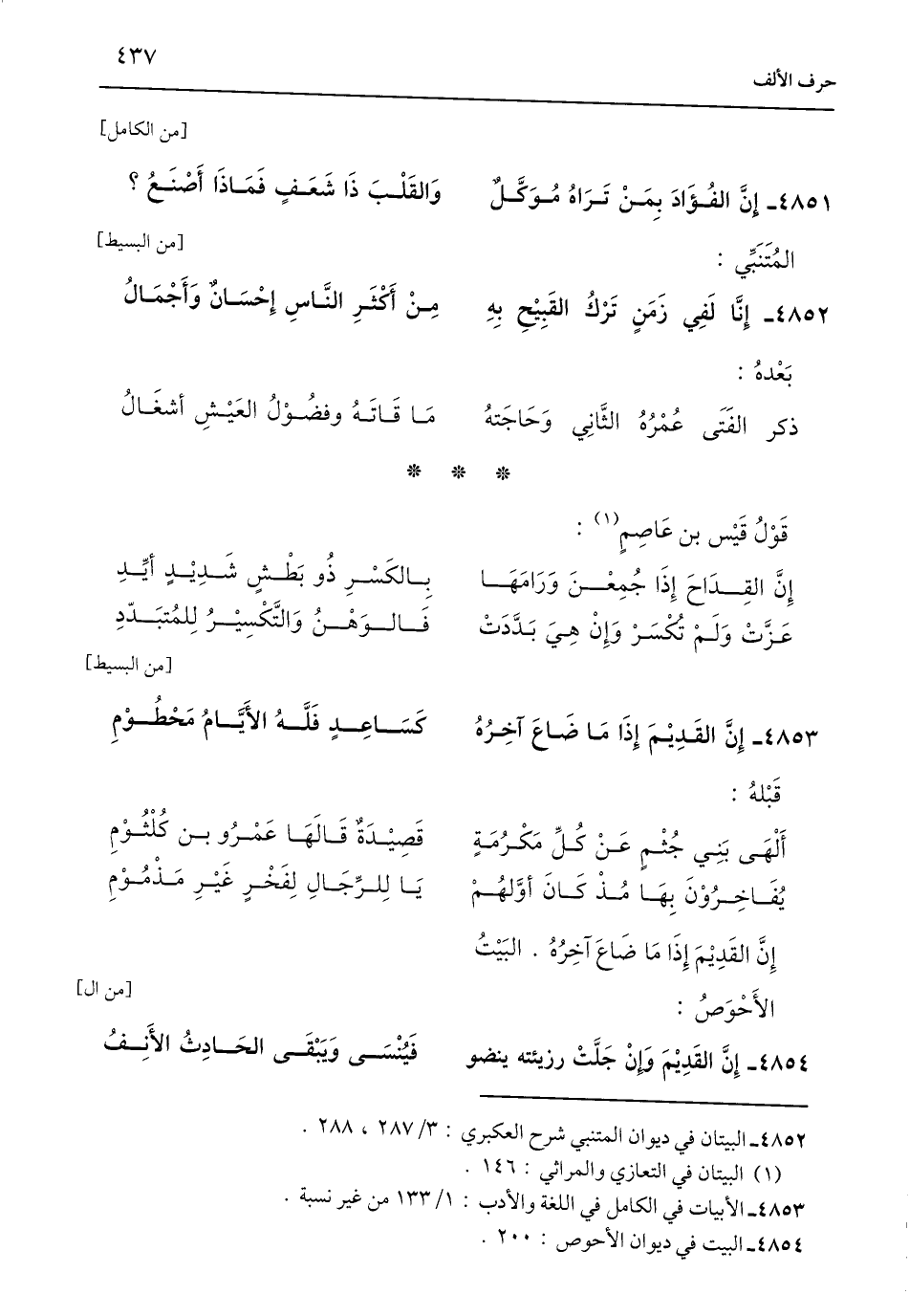 4852 - البيتان في ديوان المتنبي شرح العكبري: 3/ 287، 288.