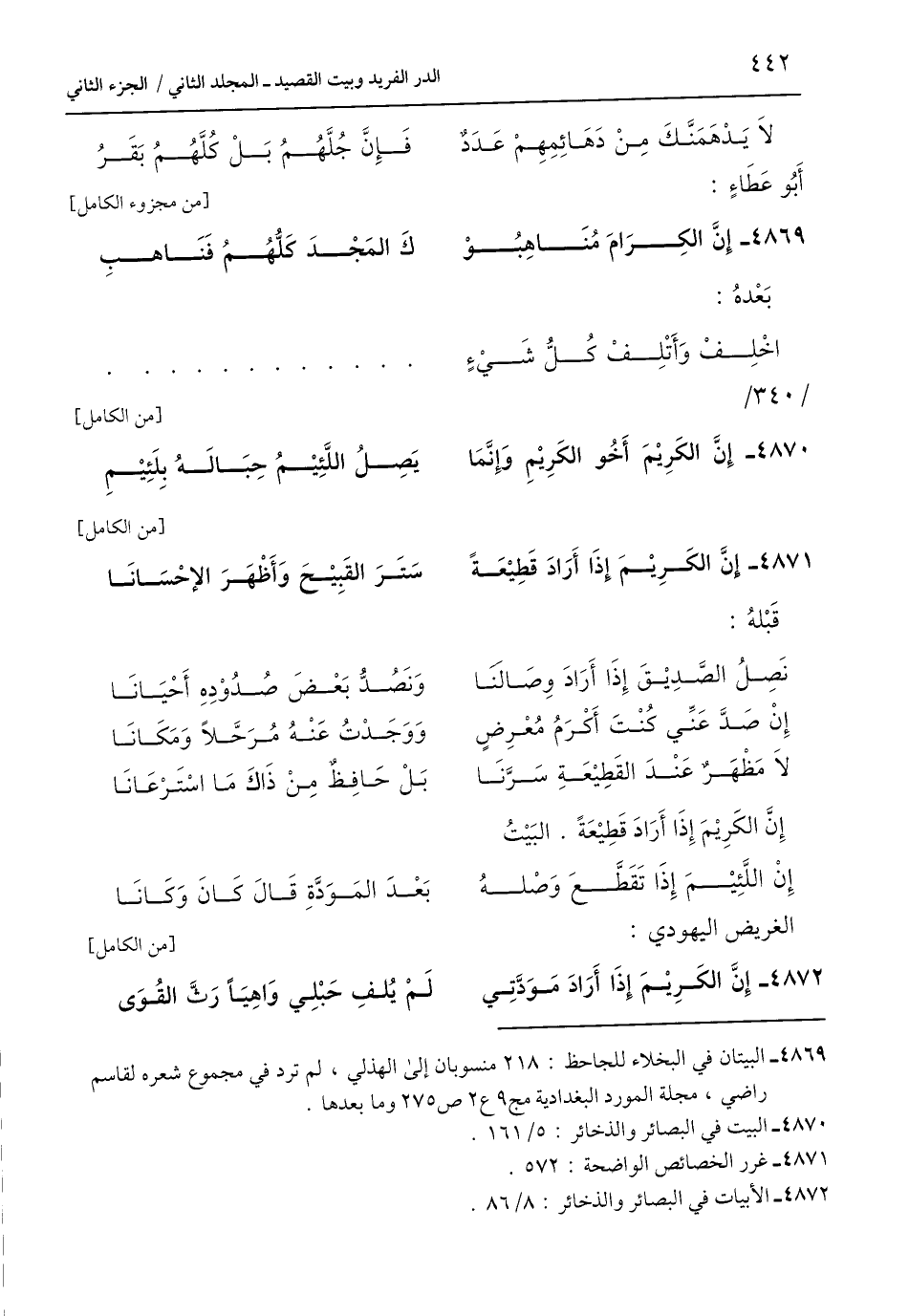 4869 - إِنَّ الكِرَامَ مُنَاهِبُوْ ... كَ المَجْدَ كَلُّهُمُ فَنَاهبِ