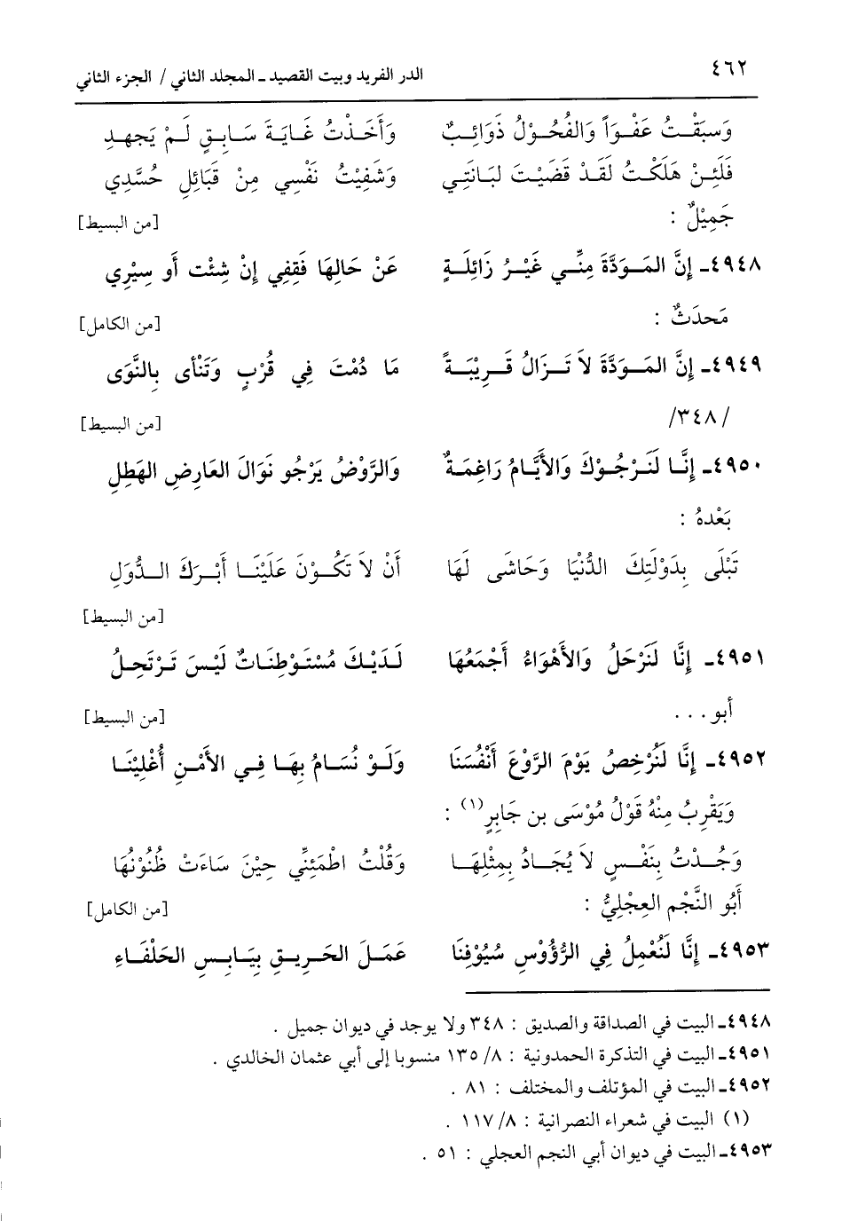 4951 - البيت في التذكره الحمدونية: 8/ 135 منسوبا إلى أبي عثمان الخالدي.