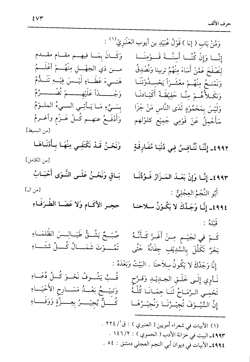 وَمُنْ بَابِ (إنا) قَوْلُ عُبَيْدِ بن أيوب العَنْبَرِيّ (¬1):