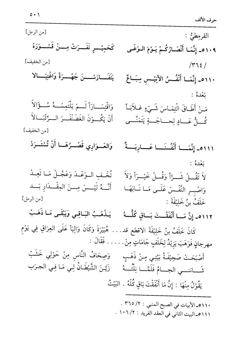 5111 - البيت الثاني في العقد الفريد: 2/ 106.