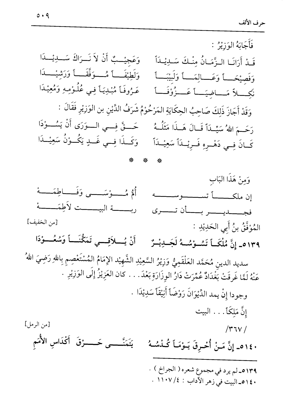 سديد الدينِ مُحَمَّد العَلْقَمِيُّ وَزِيْرُ السَّعِيْدِ الشَّهِيْد الإِمَامُ المُسْتَعْصِمِ بِاللَّهِ رَضِيَ اللَّهُ عَنْهُ لَمَّا غَرقَتْ بَغْدَادٌ عُمِّرَتْ دَارُ الوِزَارَةِ بَعْدَ. . . كان العَزِيْزُ إِلَى الوَزِيْرِ.