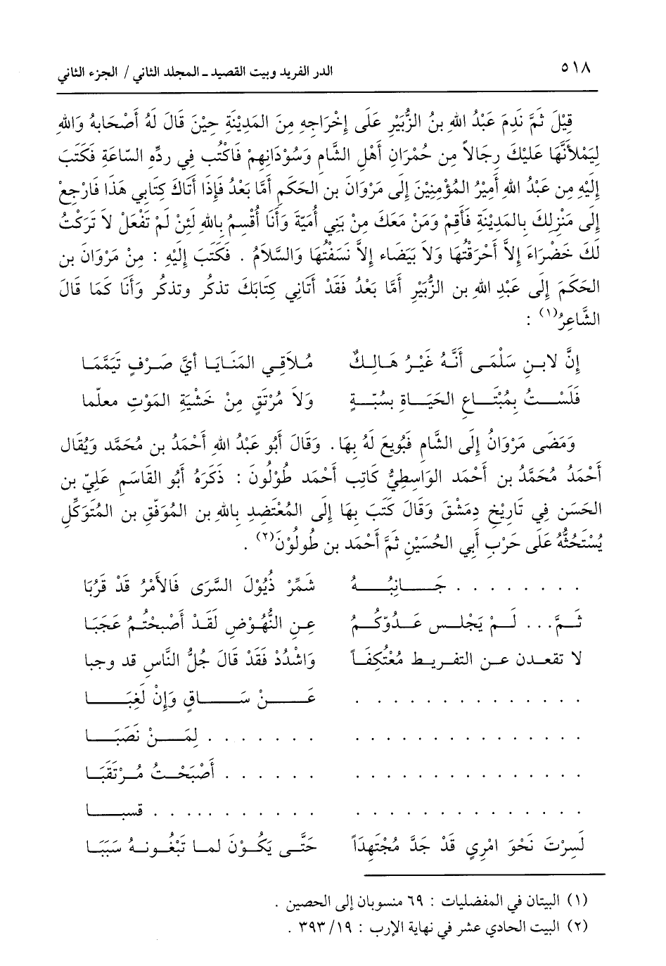 (¬1) البيتان في المفضليات: 69 منسوبان إلى الحصين.