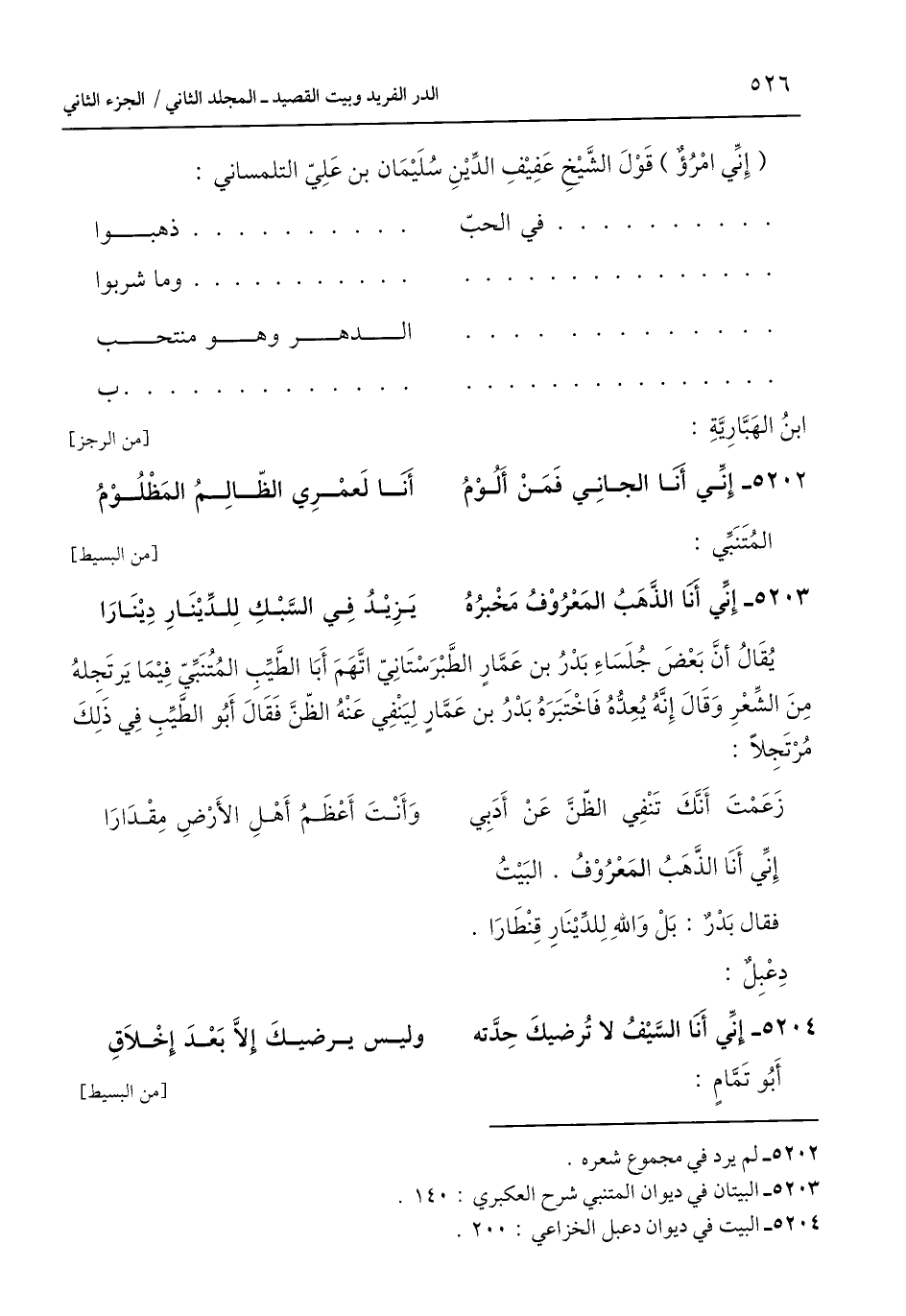 (إِنِّي امْرُؤٌ) قَوْلَ الشَّيْخِ عَفِيْفِ الدِّيْنِ سُلَيْمَان بن عَلِيّ التلمساني:
