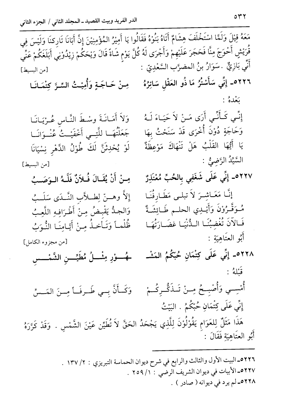 5228 - إِنِّي عَلَى كِتْمَانِ حُبّكُمُ المَشْـ ... ـهُوْرِ مِثْلُ مُطَيِّنِ الشَّمْسِ