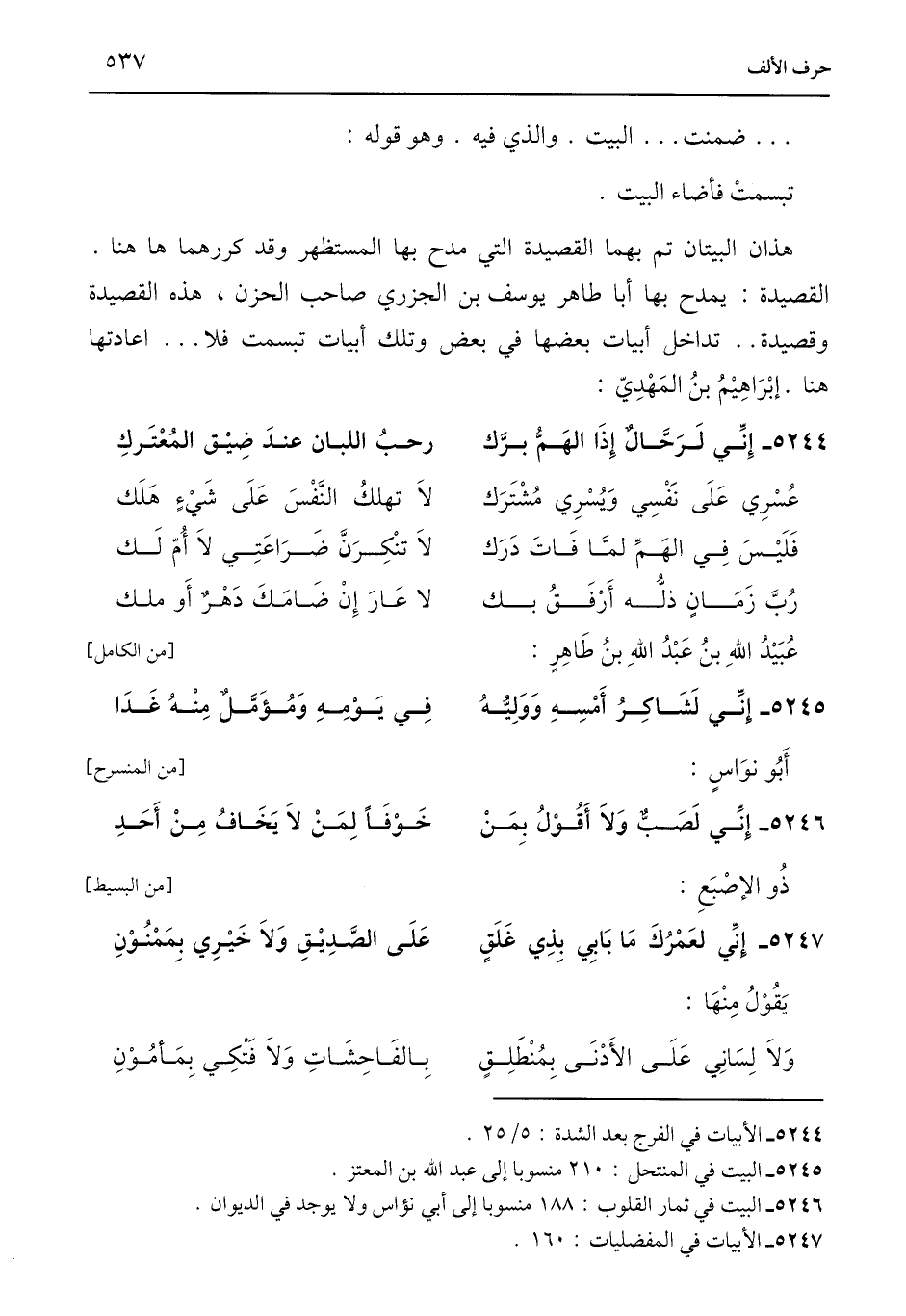 5245 - البيت في المنتحل: 210 منسوبا إلى عبد اللَّه بن المعتز.