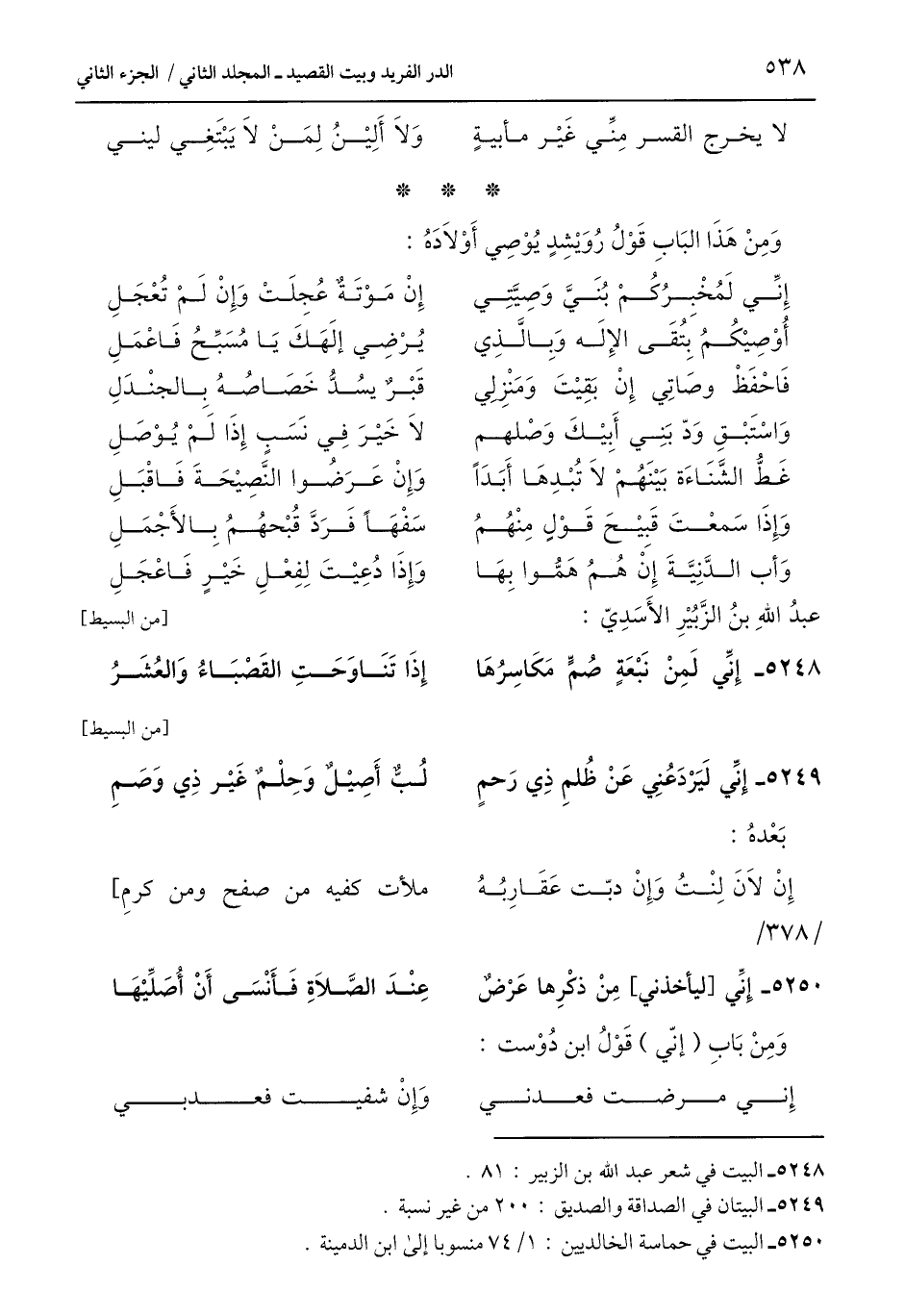5249 - البيتان في الصداقة والصديق: 200 من غير نسبة.