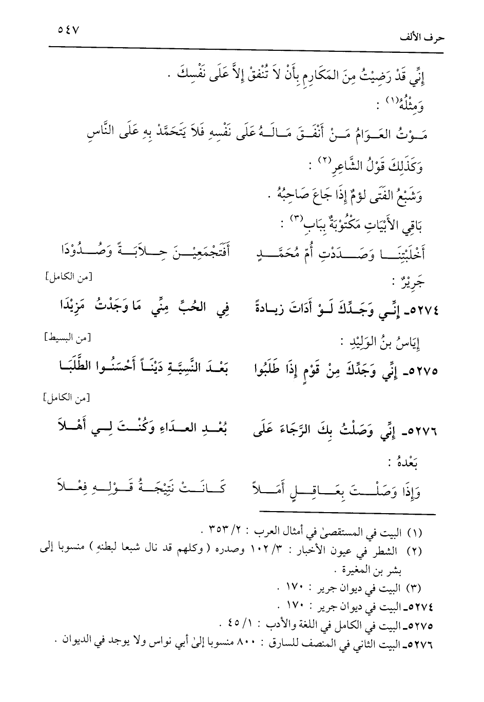 5275 - البيت في الكامل في اللغة والأدب: 1/ 45.