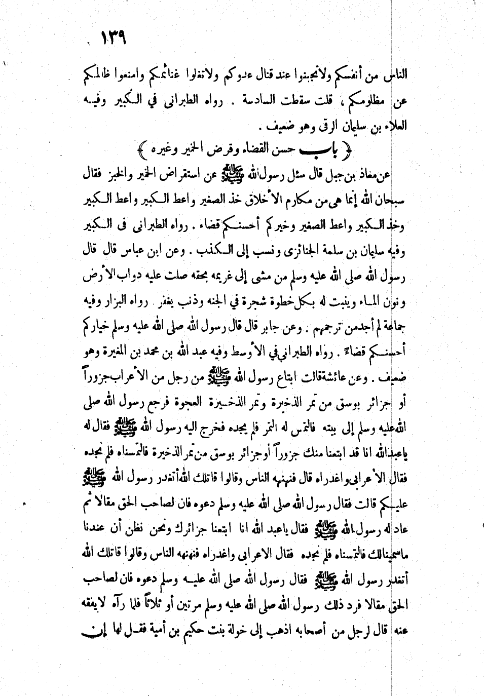 6683 - عَنْ مُعَاذِ بْنِ جَبَلٍ قَالَ: «سُئِلَ رَسُولُ اللَّهِ - صَلَّى اللَّهُ عَلَيْهِ وَسَلَّمَ - عَنِ اسْتِقْرَاضِ الْخَمِيرِ وَالْخُبْزِ؟ فَقَالَ: " سُبْحَانَ اللَّهِ! إِنَّمَا هِيَ مِنْ مَكَارِمِ الْأَخْلَاقِ، خُذِ الصَّغِيرَ وَأَعْطِ الْكَبِيرَ، وَخُذِ الْكَبِيرَ وَأَعْطِ الصَّغِيرَ، وَخَيْرُكُمْ أَحَسَنُكُمْ قَضَاءً» ".