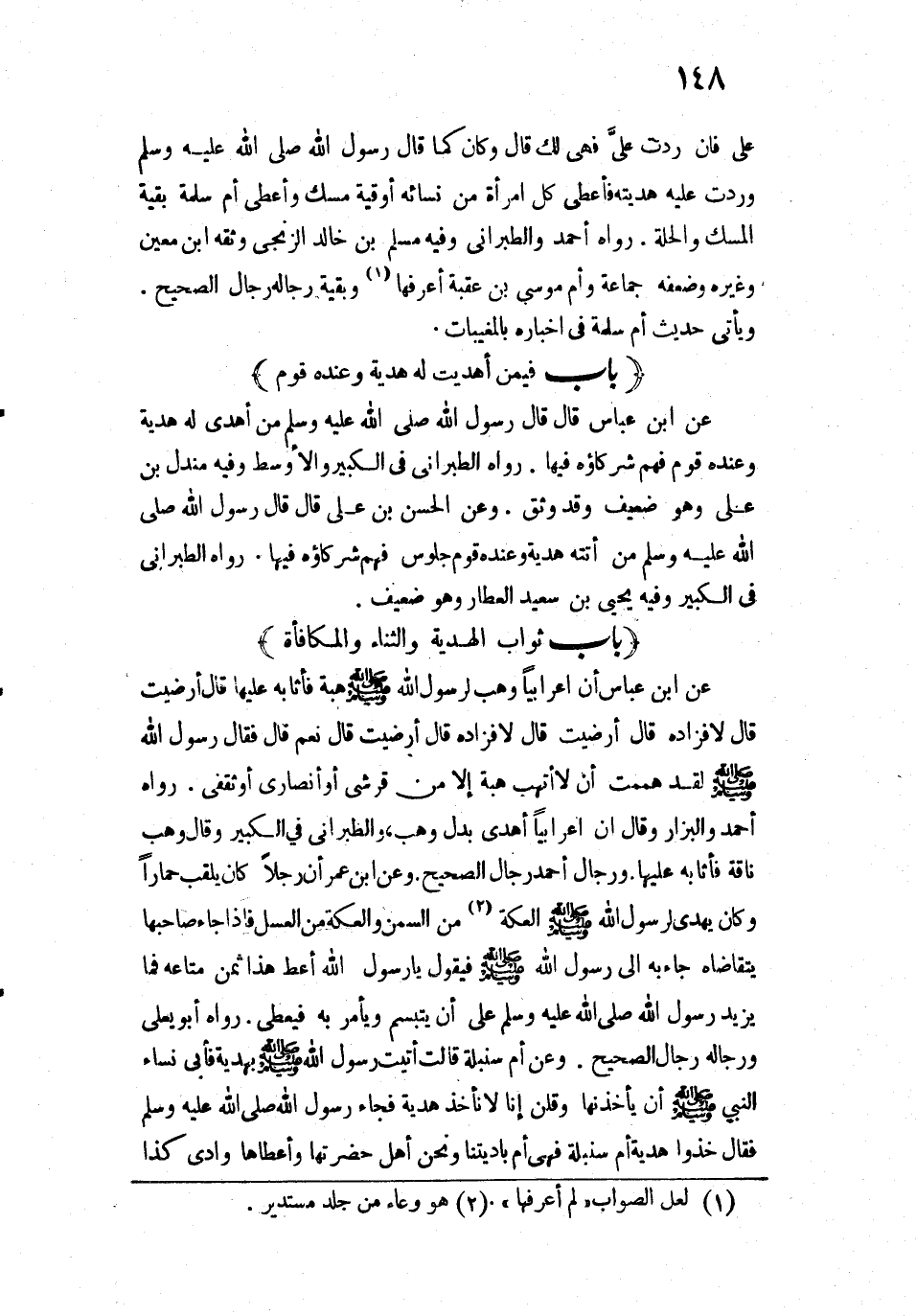رَوَاهُ أَحْمَدُ، وَالْبَزَّارُ، وَقَالَ: إِنَّ أَعْرَابِيًّا أَهْدَى بَدَلَ "وَهَبَ"، وَالطَّبَرَانِيُّ فِي الْكَبِيرِ وَقَالَ: وَهَبَ نَاقَةً، فَأَثَابَهُ عَلَيْهَا. وَرِجَالُ أَحْمَدَ رِجَالُ الصَّحِيحِ.