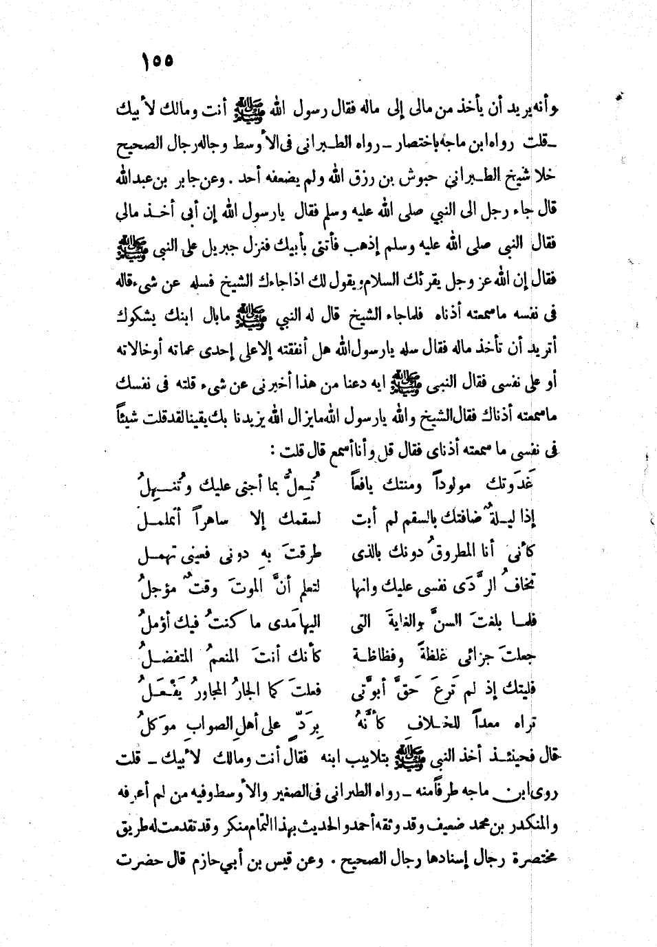 قَالَ: حِينَئِذٍ أَخَذَ النَّبِيُّ - صَلَّى اللَّهُ عَلَيْهِ وَسَلَّمَ - بِتَلَابِيبِ ابْنِهِ فَقَالَ: " أَنْتَ وَمَالُكَ لِأَبِيكَ».
