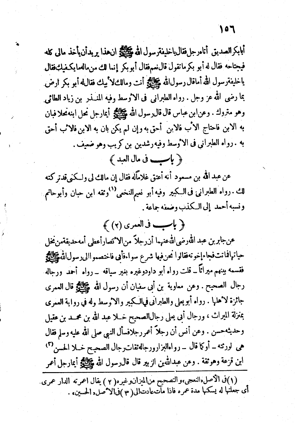 6774 - عَنْ جَابِرِ بْنِ عَبْدِ اللَّهِ - رَضِيَ اللَّهُ عَنْهُمَا «- أَنَّ رَجُلًا مِنَ الْأَنْصَارِ أَعْطَى أُمَّهُ حَدِيقَةً مِنْ نَخْلٍ حَيَاتَهَا فَمَاتَتْ، فَجَاءَ إِخْوَتُهُ، فَقَالُوا: نَحْنُ فِيهَا شَرَعٌ سَوَاءٌ. فَأَبَى، فَاخْتَصَمُوا إِلَى رَسُولِ اللَّهِ - صَلَّى اللَّهُ عَلَيْهِ وَسَلَّمَ - فَقَسَّمَهُ بَيْنَهُمْ مِيرَاثًا». قُلْتُ: رَوَاهُ أَبُو دَاوُدَ، وَغَيْرُهُ بِغَيْرِ سِيَاقِهِ.