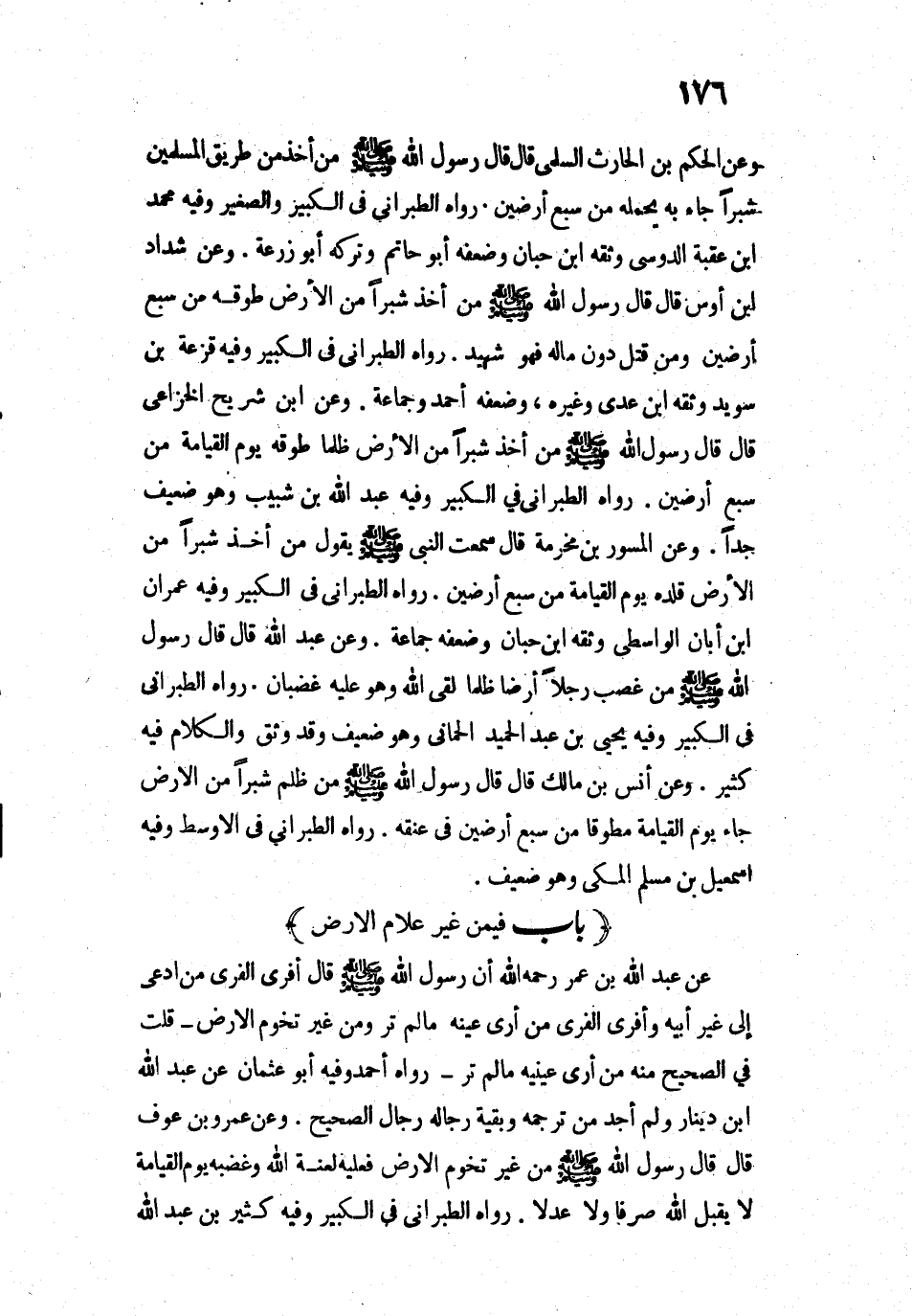 6890 - وَعَنِ الْمِسْوَرِ بْنِ مَخْرَمَةَ قَالَ: سَمِعْتُ النَّبِيَّ - صَلَّى اللَّهُ عَلَيْهِ وَسَلَّمَ - يَقُولُ: «مَنْ أَخَذَ شِبْرًا مِنَ الْأَرْضِ قُلِّدَهُ يَوْمَ الْقِيَامَةِ مِنْ سَبْعِ أَرَضِينَ».