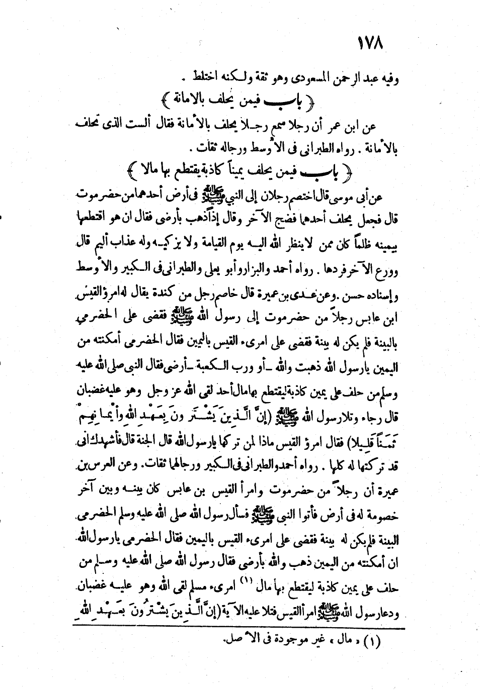 6901 - عَنِ ابْنِ عُمَرَ «أَنَّ النَّبِيَّ - صَلَّى اللَّهُ عَلَيْهِ وَسَلَّمَ - سَمِعَ رَجُلًا يَحْلِفُ بِالْأَمَانَةِ، فَقَالَ: " أَلَسْتَ الَّذِي تَحْلِفُ بِالْأَمَانَةِ؟».