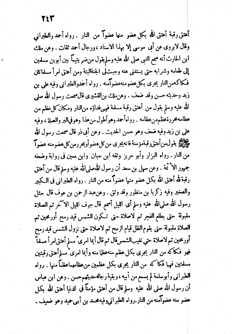 7260 - «وَعَنِ ابْنِ عَبَّاسٍ أَنَّ رَسُولَ اللَّهِ - صَلَّى اللَّهُ عَلَيْهِ وَسَلَّمَ - قَالَ: " مَنْ أَعْتَقَ مُؤْمِنًا فِي الدُّنْيَا أَعْتَقَ اللَّهُ بِكُلِّ عُضْوٍ مِنْهُ عُضْوًا مِنْهُ مِنَ النَّارِ» ".