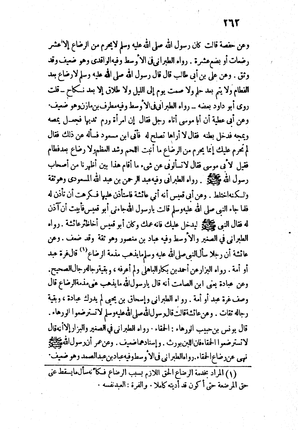 7366 - وَعَنْ حَفْصَةَ قَالَتْ: «كَانَ رَسُولُ اللَّهِ - صَلَّى اللَّهُ عَلَيْهِ وَسَلَّمَ - لَا يُحَرِّمُ مِنَ الرَّضَاعِ إِلَّا عَشْرَ رَضَعَاتٍ أَوْ بِضْعَ عَشْرَةَ».