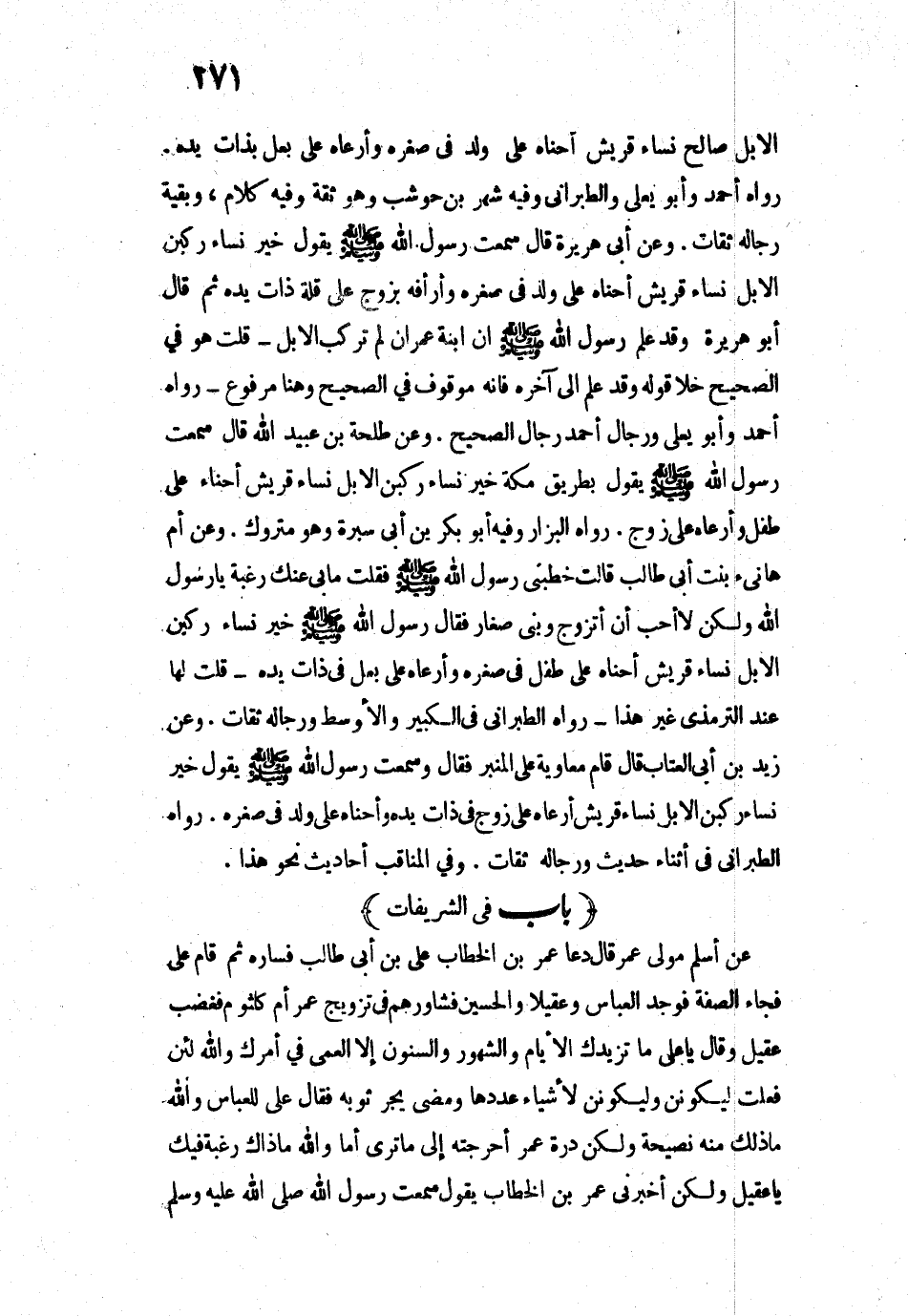7426 - «وَعَنْ أَبِي هُرَيْرَةَ قَالَ: سَمِعْتُ رَسُولَ اللَّهِ - صَلَّى اللَّهُ عَلَيْهِ وَسَلَّمَ - يَقُولُ: " خَيْرُ نِسَاءٍ رَكِبْنَ الْإِبِلَ نِسَاءُ قُرَيْشٍ أَحْنَاهُ عَلَى وَلَدٍ فِي صِغَرِهِ وَأَرْأَفَهُ بِزَوْجٍ عَلَى قِلَّةِ ذَاتِ يَدِهِ ".