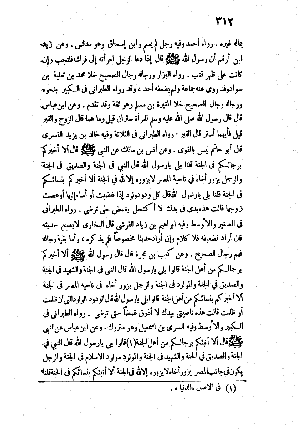 7662 - وَعَنْ أَنَسِ بْنِ مَالِكٍ عَنِ النَّبِيِّ - صَلَّى اللَّهُ عَلَيْهِ وَسَلَّمَ - قَالَ: «أَلَا أُخْبِرُكُمْ بِرِجَالِكُمْ فِي الْجَنَّةِ؟ " قُلْنَا: بَلَى يَا رَسُولَ اللَّهِ. قَالَ: " النَّبِيُّ فِي الْجَنَّةِ وَالصِّدِّيقُ فِي الْجَنَّةِ، وَالشَّهِيدُ فِي الْجَنَّةِ، وَالْمَوْلُودُ فِي الْجَنَّةِ، وَالرَّجُلُ يَزُورُ أَخَاهُ فِي نَاحِيَةِ الْمِصْرِ لَا يَزُورُهُ إِلَّا لِلَّهِ فِي الْجَنَّةِ أَلَا أُخْبِرُكُمْ بِنِسَائِكُمْ فِي الْجَنَّةِ؟ " قُلْنَا: بَلَى يَا رَسُولَ اللَّهِ قَالَ: " كُلُّ وَدُودٍ وَلُودٍ إِذَا غَضِبَتْ أَوْ أُسِيءَ إِلَيْهَا أَوْ غَضِبَ زَوْجُهَا قَالَتْ: هَذِهِ يَدِي فِي يَدِكَ لَا أَكْتَحِلُ بِغُمْضٍ حَتَّى تَرْضَى».