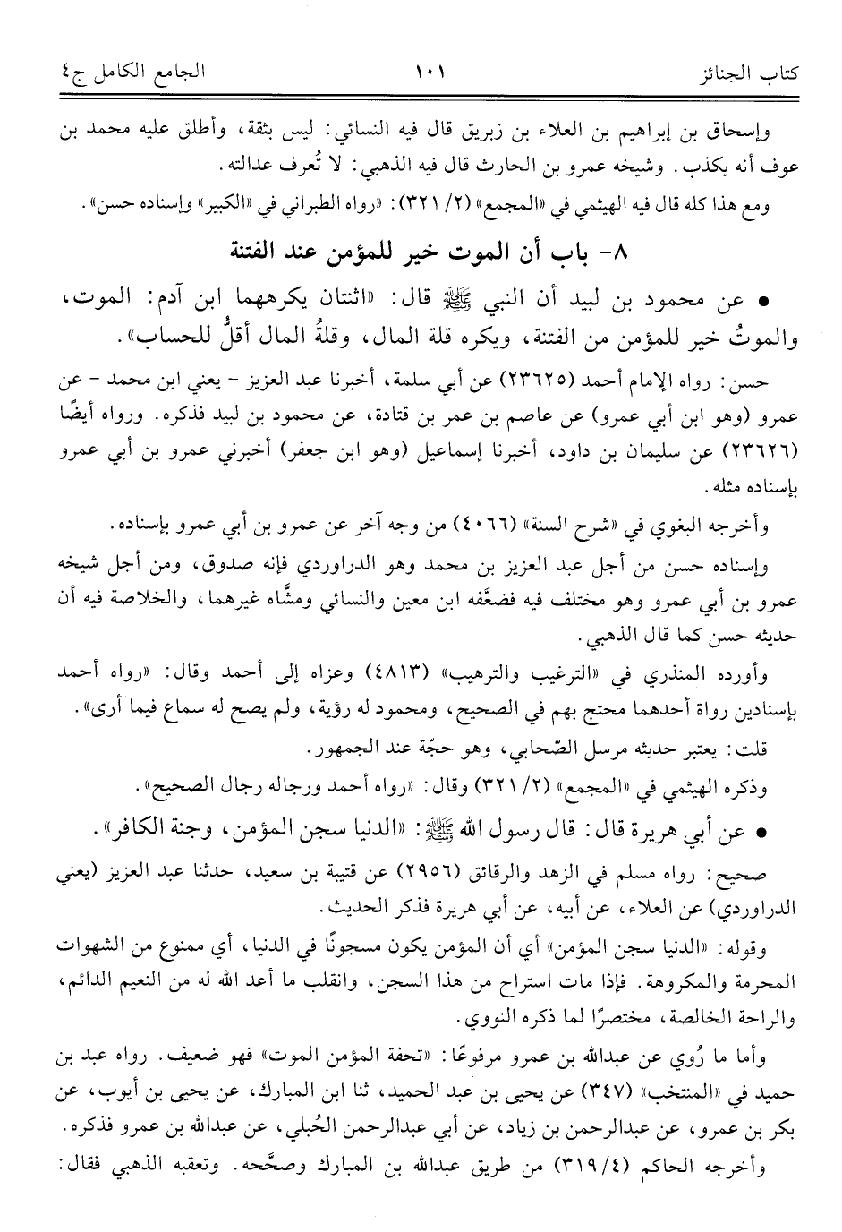 كتاب الجامع الكامل في الحديث الصحيح الشامل المرتب على أبواب الفقه (اسم الجزء: 4)