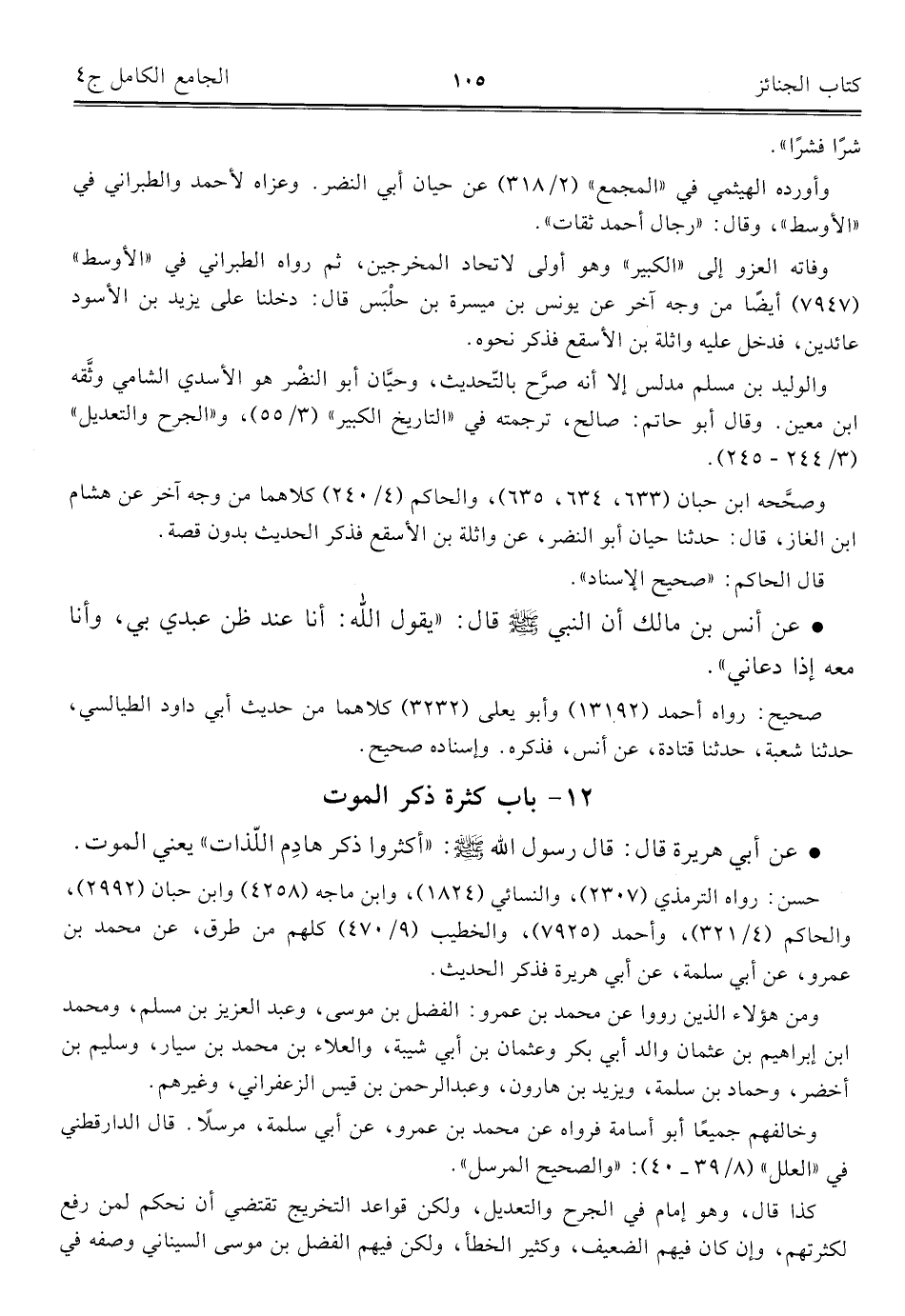 كتاب الجامع الكامل في الحديث الصحيح الشامل المرتب على أبواب الفقه (اسم الجزء: 4)