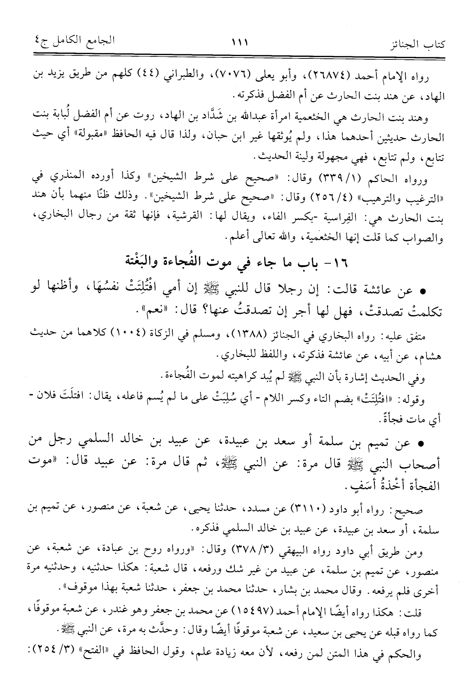 كتاب الجامع الكامل في الحديث الصحيح الشامل المرتب على أبواب الفقه (اسم الجزء: 4)