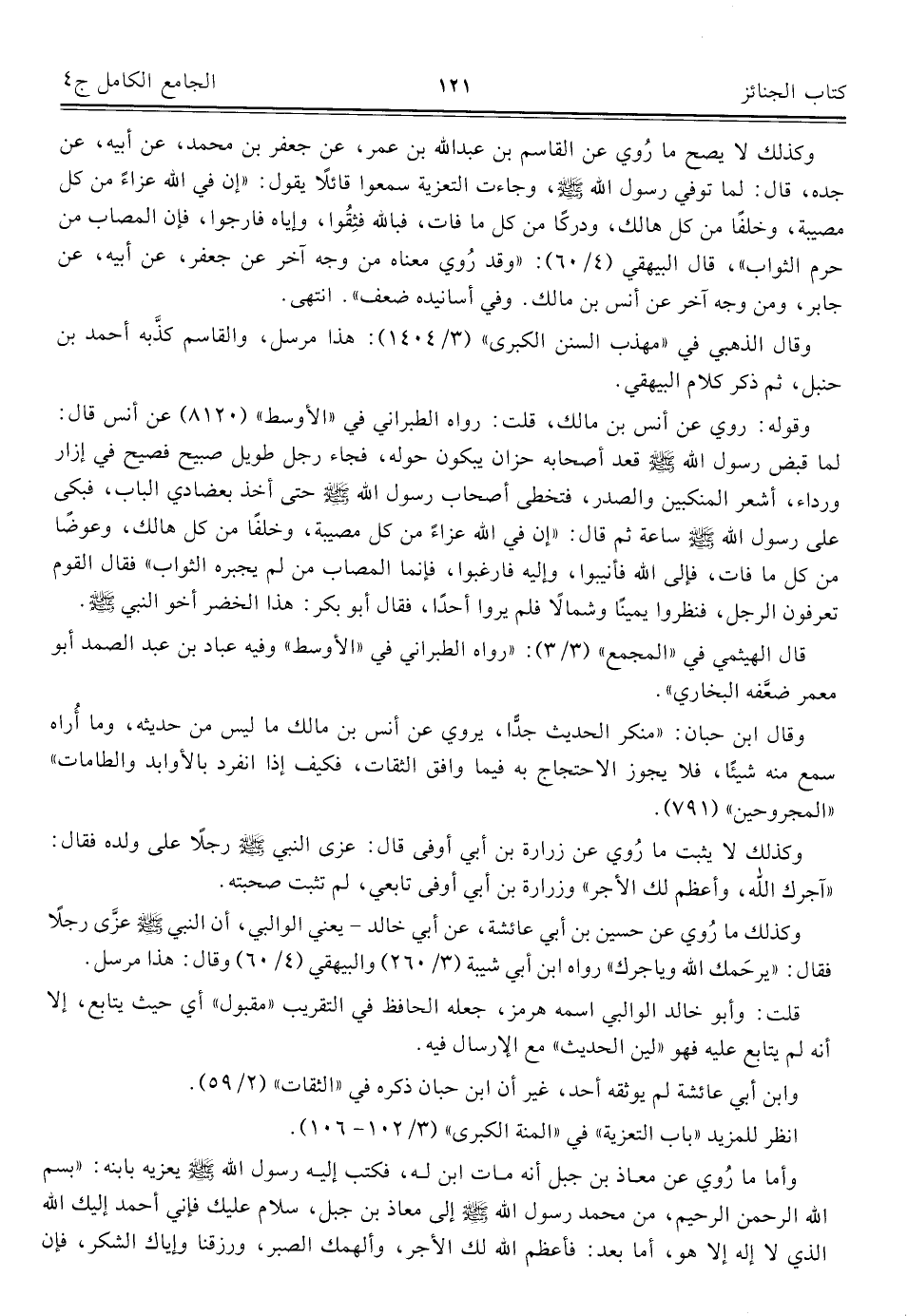 كتاب الجامع الكامل في الحديث الصحيح الشامل المرتب على أبواب الفقه (اسم الجزء: 4)