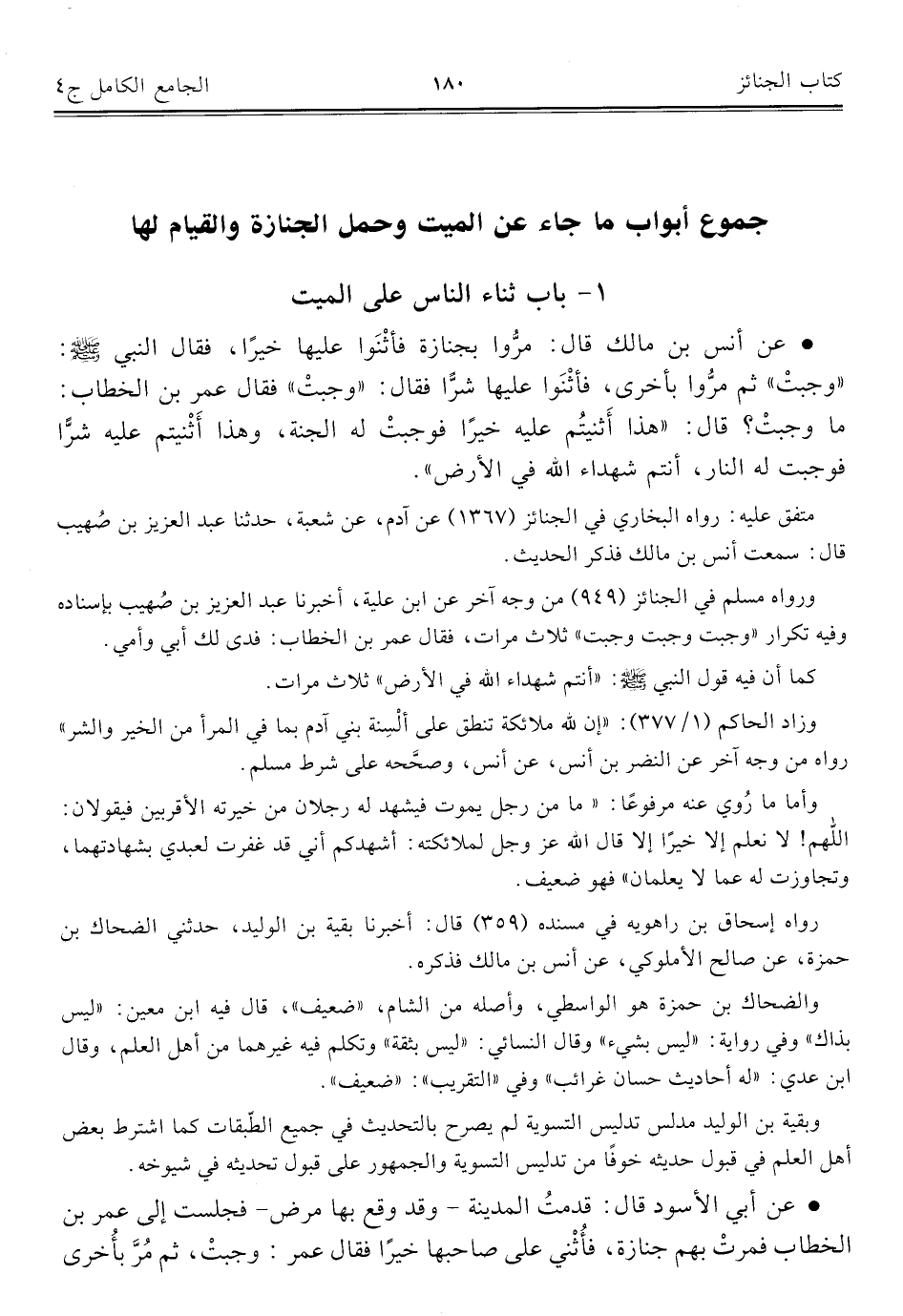 كتاب الجامع الكامل في الحديث الصحيح الشامل المرتب على أبواب الفقه (اسم الجزء: 4)