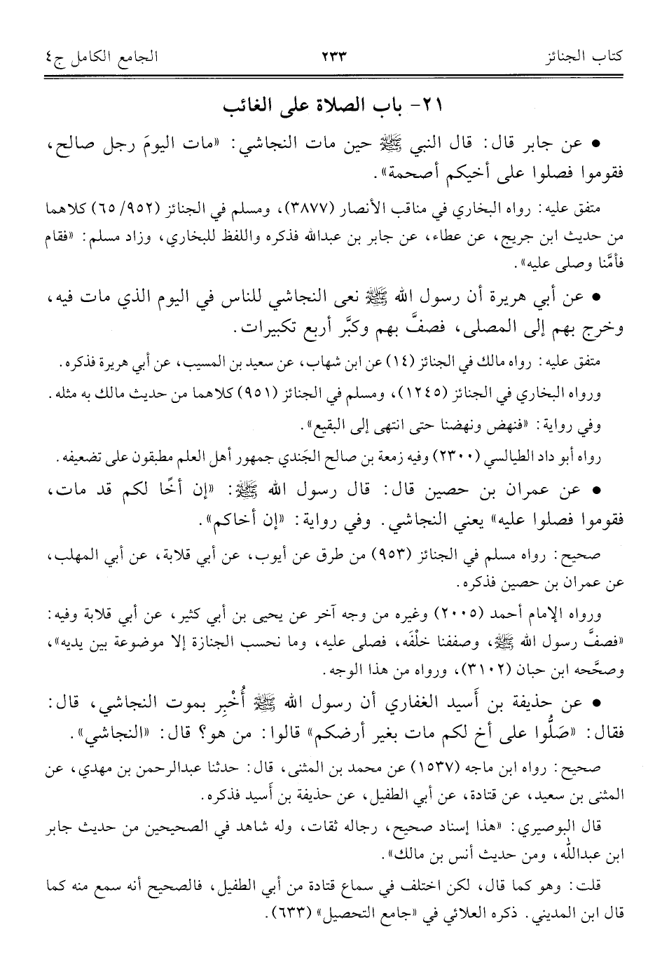 كتاب الجامع الكامل في الحديث الصحيح الشامل المرتب على أبواب الفقه (اسم الجزء: 4)