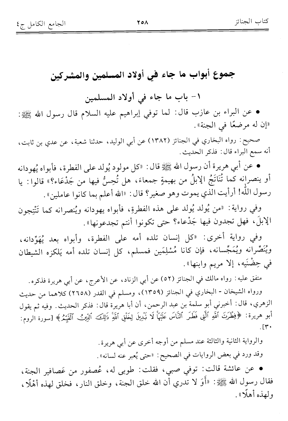 جموع أبواب ما جاء في أولاد المسلمين والمشركين