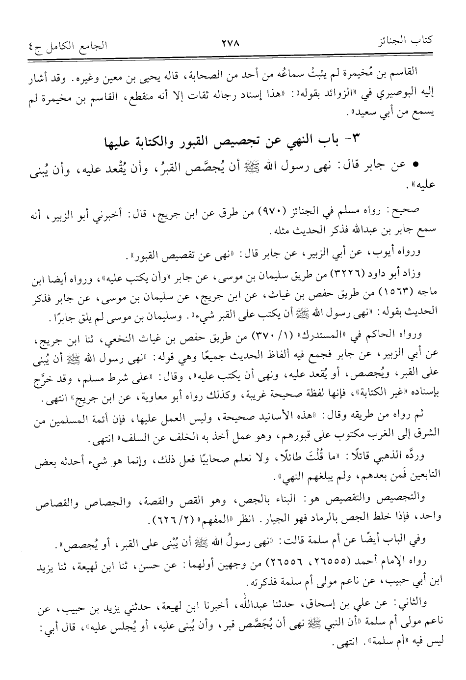 ٣ - باب النهي عن تجصيص القبور والكتابة عليها