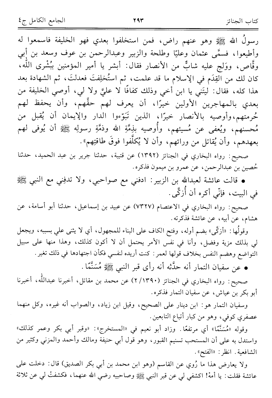 • عن سفيان التمار أنه حدَّثه أنه رأى قبر النبي - صلى الله عليه وسلم - مُسَنَّمًا.